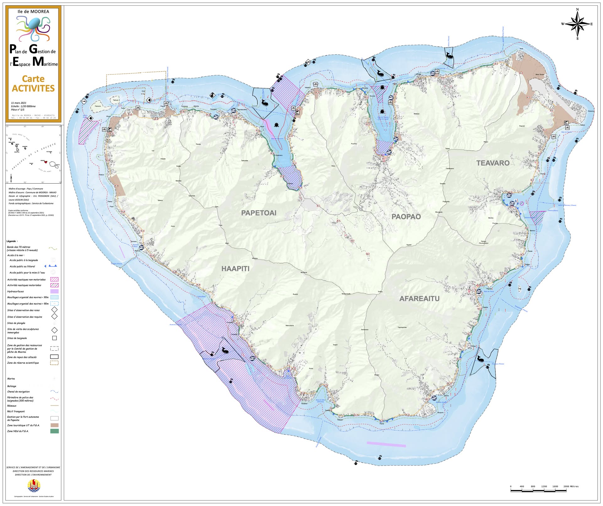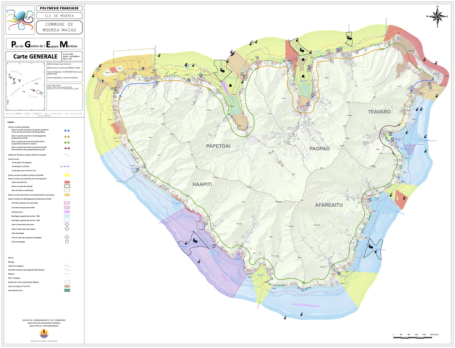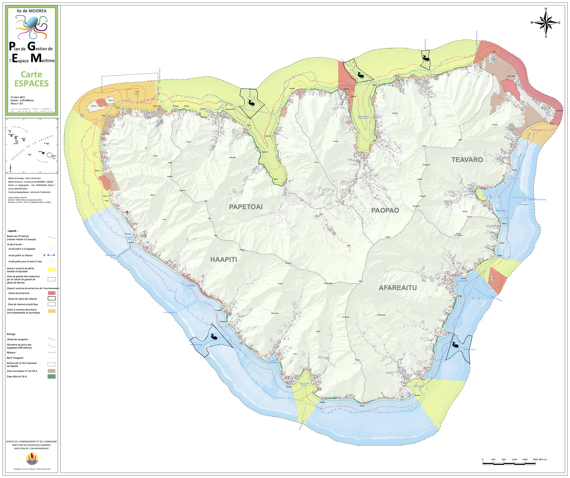 La réglementation du PGEM de Moorea est définie par un arrêté en conseil des ministres après une longue procédure collaborative et consultative entre le gouvernement de la Polynésie française, la commune de Moorea-Maiao et la société civile.