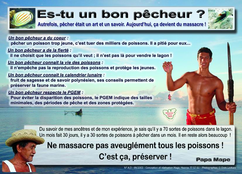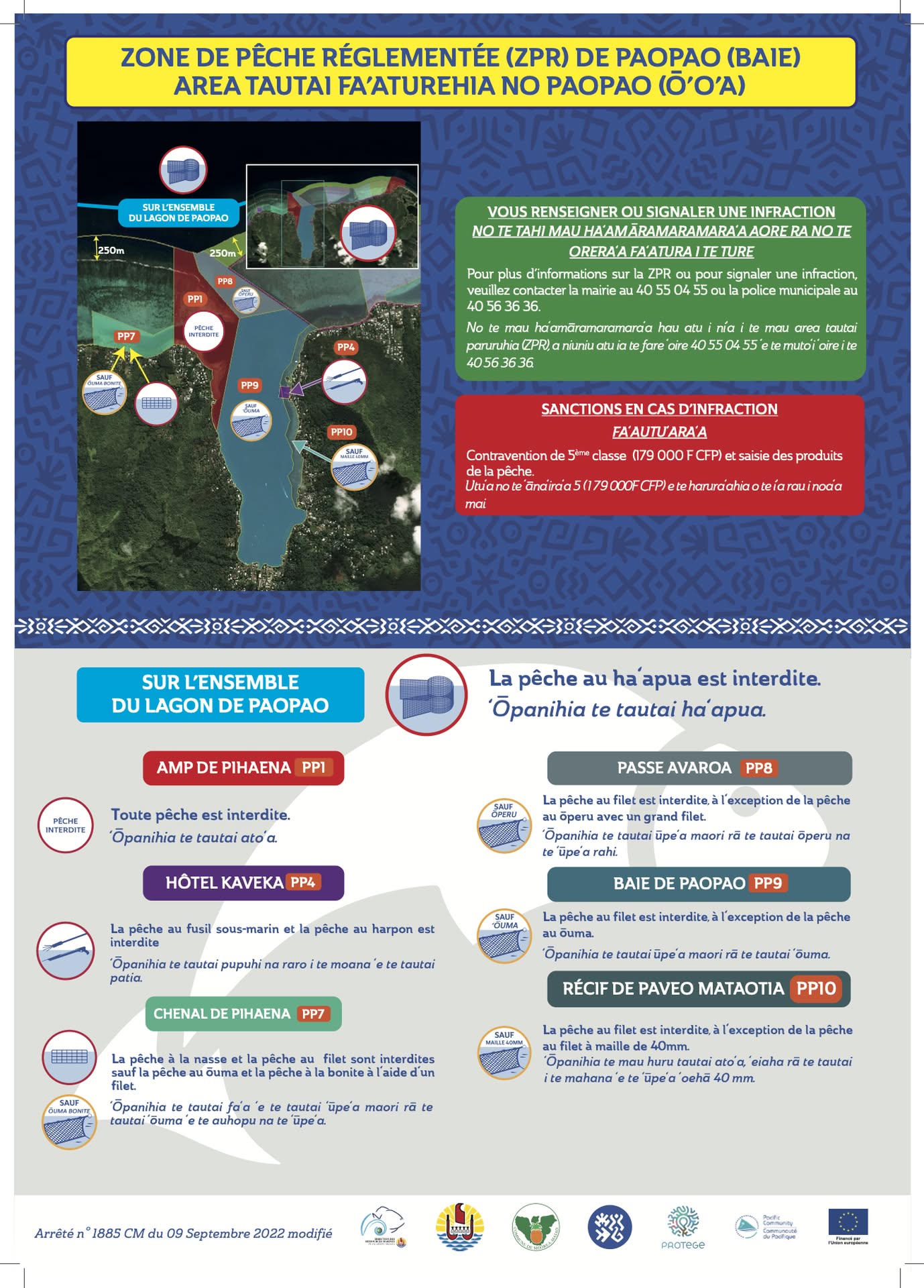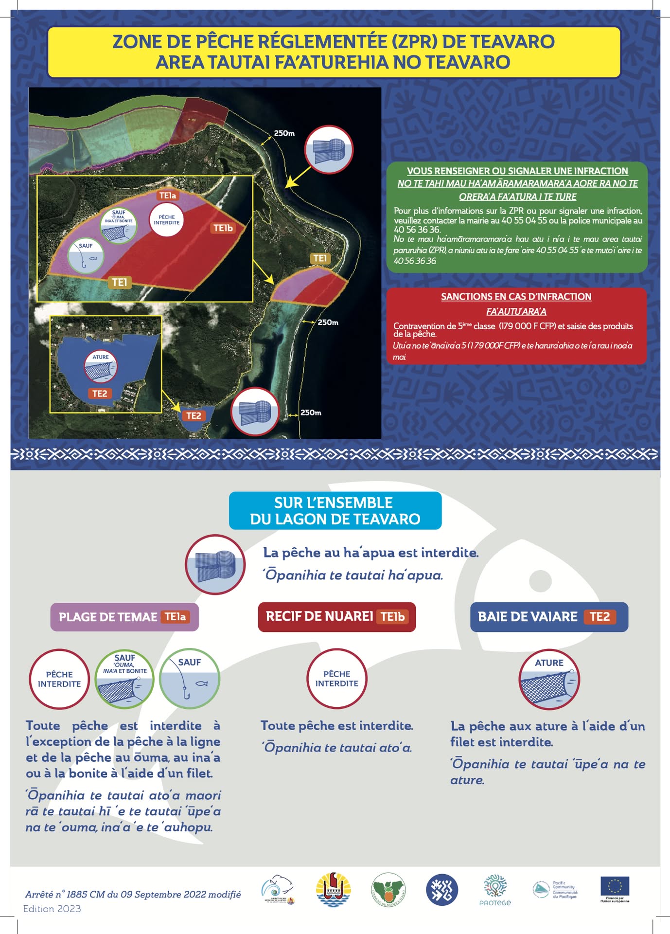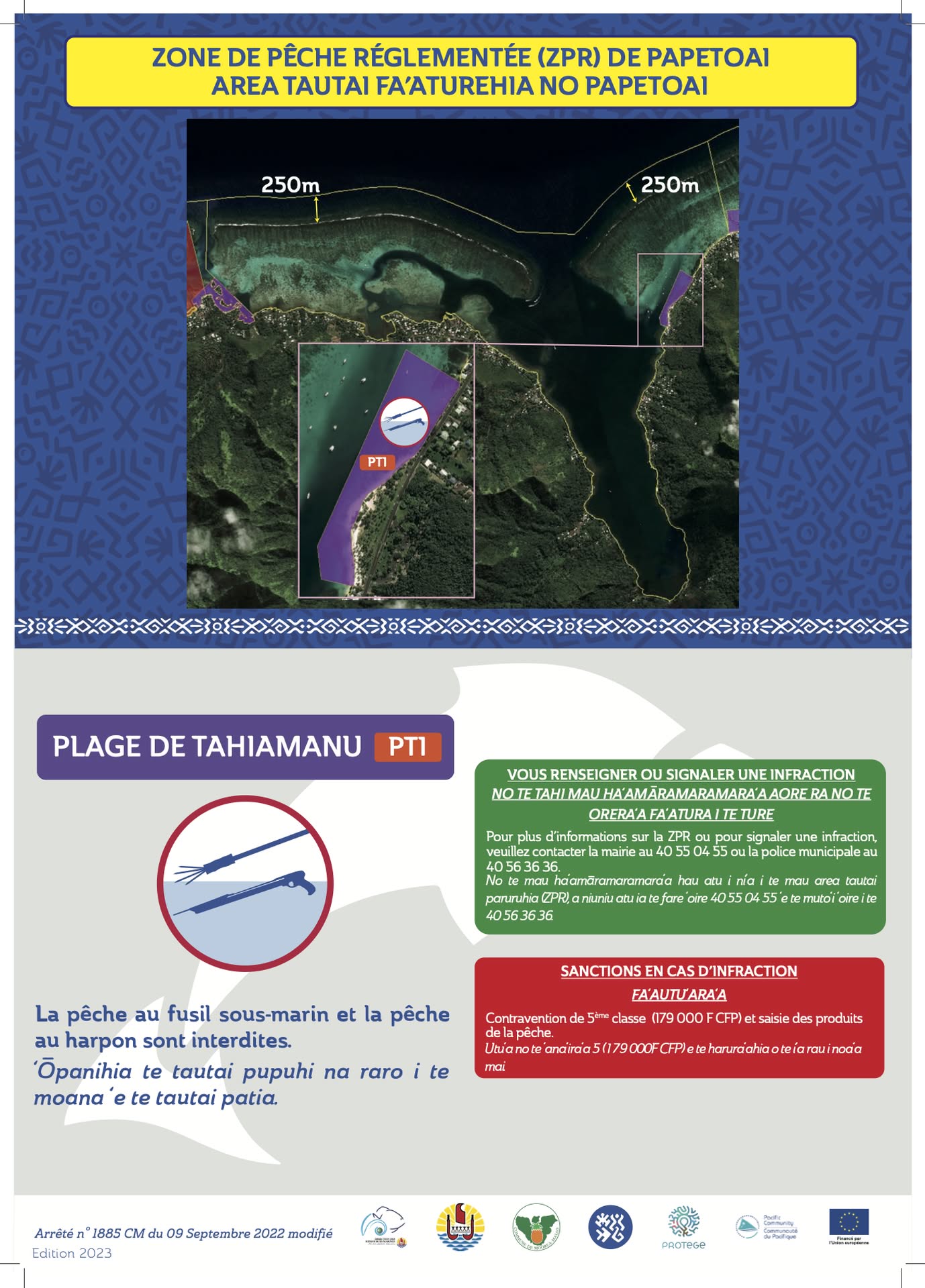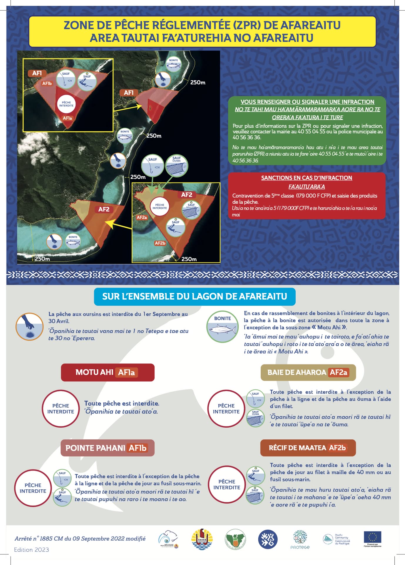 Pour la pêche sur Moorea, se référer à l’ arrêté n° 1885 CM du 9 septembre 2022 réglementant la pêche sur l’espace maritime au droit de la commune de Moorea-Maiao :