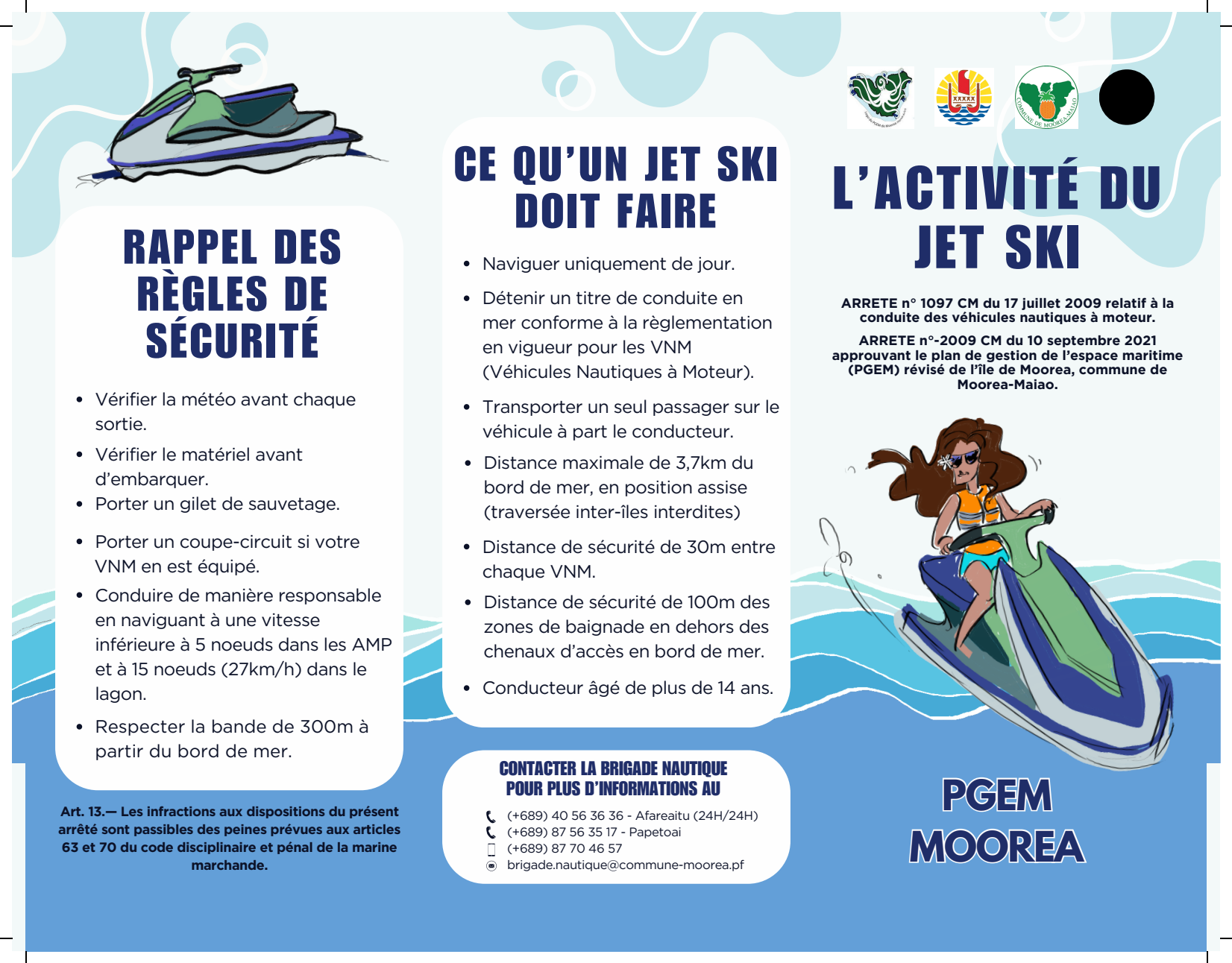 - de mettre en oeuvre les moyens nécessaires à l’application de la règlementation relative à la protection des zones littorales et récifales incluses dans le PGEM de Moorea et